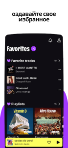 - Создавать персональные плейлисты или делиться ими с друзьями.