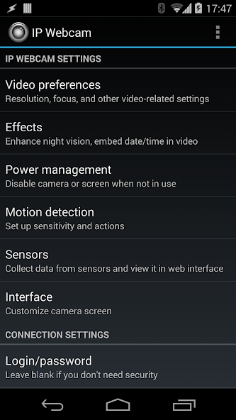 IP Webcam Pro предлагает гибкие настройки для различных сценариев. Вы можете использовать его как камеру для видеочатов, подключив к ПК через универсальный драйвер. Для наблюдения за домом или питомцами доступны функции ночного видения и детекторы активности. А интеграция с Tasker позволяет автоматизировать процессы, например, включение записи при движении.