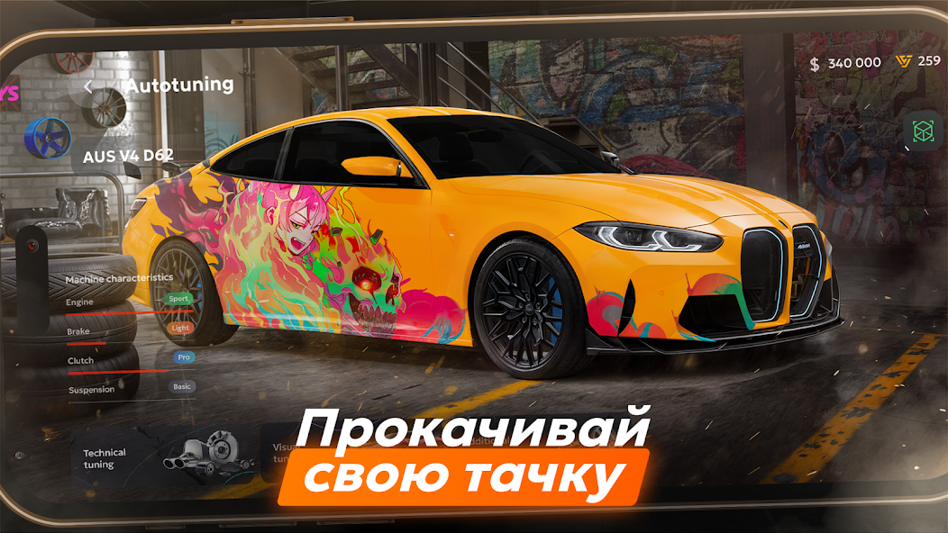 - Управлять быстрыми автомобилями, участвуя в гонках или просто наслаждаясь свободой передвижения.