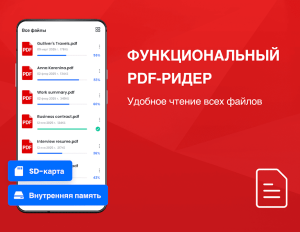 PDF Reader — это универсальное приложение для работы с PDF-документами, которое позволяет вам не только читать, но и редактировать, аннотировать и управлять файлами. Оно автоматически сканирует устройство, находя все PDF-файлы, и предоставляет удобный доступ к ним. PDF Reader станет вашим незаменимым помощником для работы, учёбы и повседневных задач.