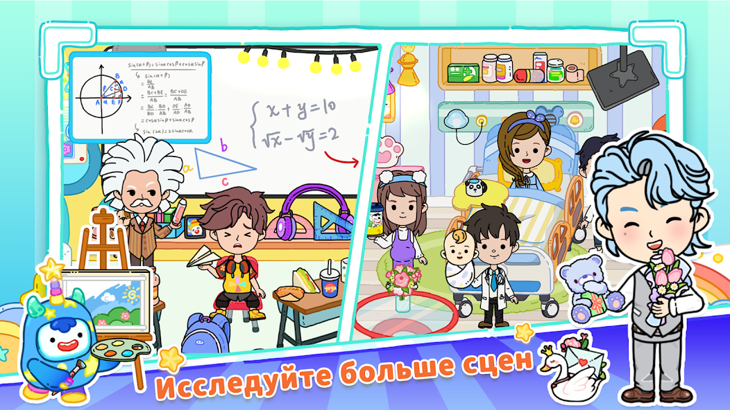 YoYa: Busy Life World — это креативное приложение, сочетающее элементы симулятора жизни и интерактивного развлечения. Вас ждет уникальный мир, где вы можете управлять персонажами, моделировать ситуации и придумывать интересные истории. Основной жанр игры— виртуальная песочница, но с сильным акцентом на бытовую симуляцию. Вы сами выбираете, кем быть и чем заниматься, исследуя разнообразные локации и взаимодействуя с многочисленными интерактивными объектами.