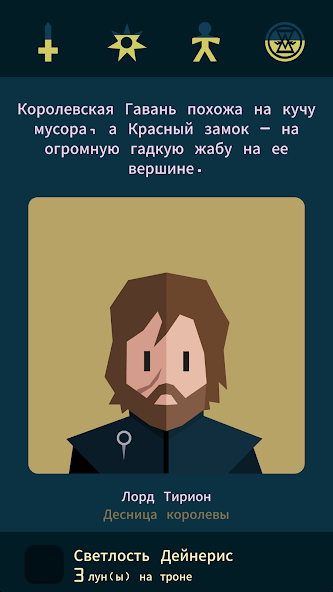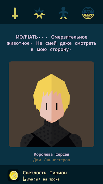 Reigns: Game of Thrones — это стратегическая карточная игра, где вы управляете судьбами Вестероса. В роли одного из девяти ключевых персонажей, таких как Дейенерис Таргариен или Тирион Ланнистер, вы принимаете решения, влияющие на баланс власти, богатства, религии и народной любви. Каждое ваше действие может привести к триумфу или падению.