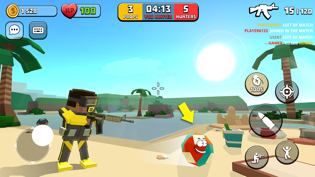 Для упрощения задач у вас есть специальные способности. Охотники используют гранаты, чтобы находить спрятавшиеся предметы, а предметы могут быстро убегать, чтобы избежать поимки. Эти способности можно получить из контейнеров или приобрести за внутриигровую валюту. Также вы можете персонализировать своего персонажа, выбирая облики, оружие и даже насмешки.