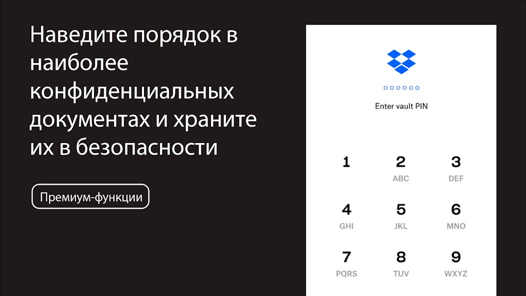 - Защита конфиденциальных данных с помощью Dropbox Vault.