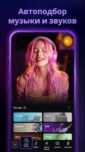 После завершения работы вы можете экспортировать видео в разрешении 1080p без водяных знаков и сразу поделиться им в социальных сетях.
