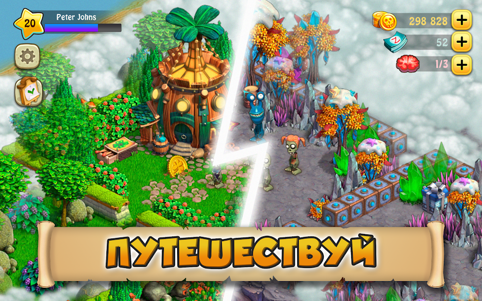 На вашем острове можно построить всё: от огородов до пиратских таверн. Выращивайте костирузы, гипносолнухи и другие экзотические культуры. Путешествуйте по миру, посещая такие локации, как Остров Игрушек или Астероид. Каждое новое место открывает перед вами новые возможности для развития и приключений.