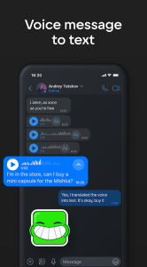 - Голосовые сообщения с автоматической расшифровкой в текст.