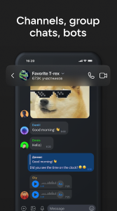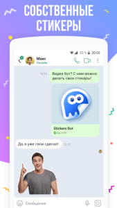 - Текстовые сообщения с возможностью добавления стикеров и гифок.