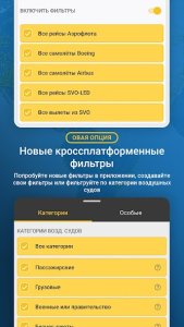 - Фильтры: выбирайте рейсы по авиакомпании, высоте или скорости.