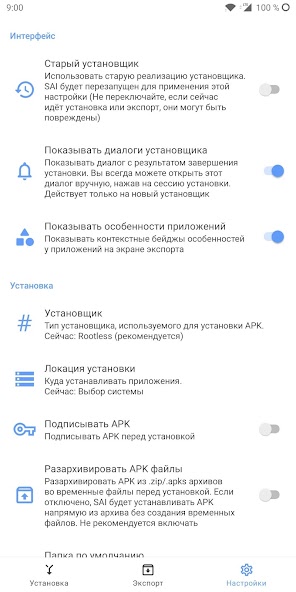 SAI разработан с учётом удобства и безопасности. Приложение предупреждает вас о возможных проблемах при установке крупных файлов и поддерживает работу с различными версиями Android, начиная с 5.0. Это делает его надёжным выбором для тех, кто ценит контроль и функциональность в работе с приложениями.