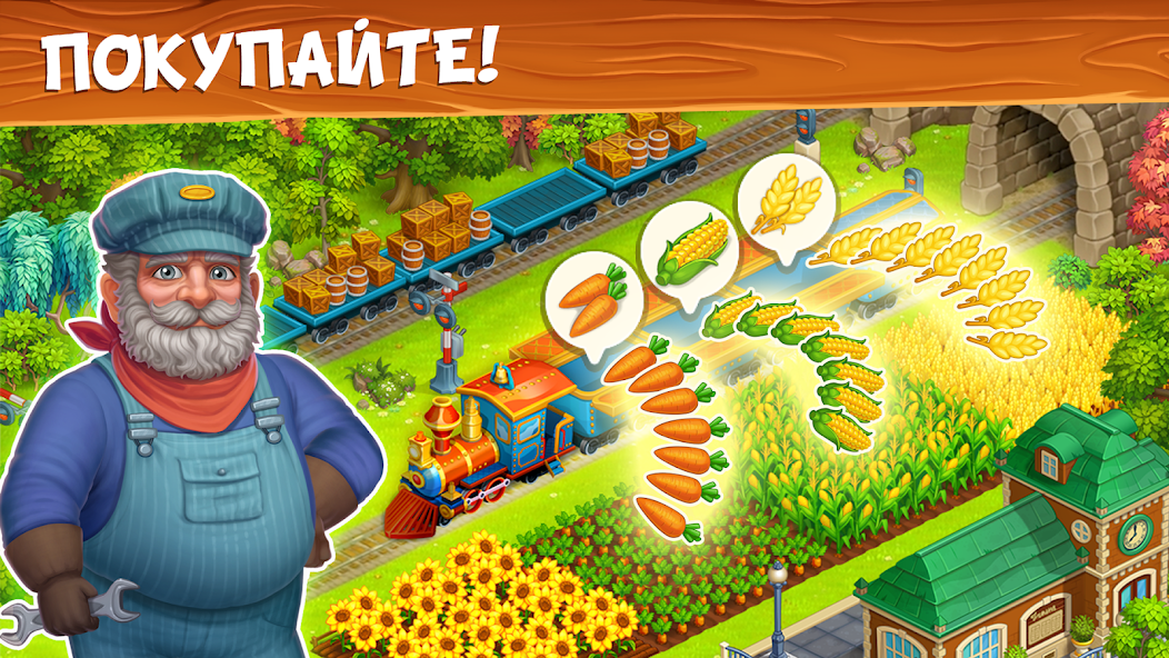 Ваша задача — развивать город и ферму одновременно. Выращивайте пшеницу, кукурузу, разводите коров и куриц, чтобы обеспечивать жителей продуктами. Используйте поезд для отправки товаров в соседние поселения и выполняйте заказы службы доставки. Это не только увеличивает доход, но и делает ваш город более привлекательным для новых жителей.