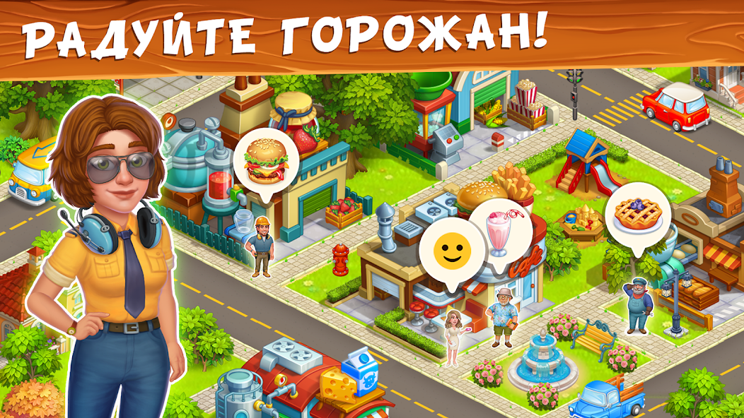 В вашем распоряжении десятки декораций, кафе, ресторанов и домов. Создавайте детские площадки, высаживайте цветы и организуйте фестивали, чтобы сделать жителей счастливыми. Каждый элемент декора добавляет уникальности вашему городу, а выполнение заданий открывает новые возможности для его развития.