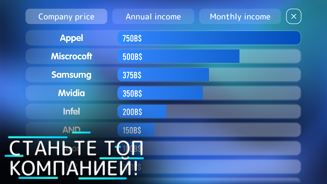 - Улучшаете офис и фабрику, нанимаете сотрудников и инвестируете в маркетинг.
