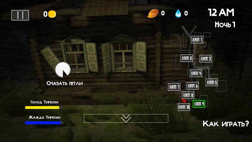 Основной геймплей делится на ночи, каждая из которых становится всё сложнее и напряжённее. Не думайте, что вы сможете спрятаться или отсидеться в ожидании утра. Вам предстоит выполнять задания, например, рубить дрова, чтобы поддерживать огонь в печи, или собирать воду и огурцы в подвале. Отправляясь на кажущиеся безопасными дела, вы всегда должны быть начеку, так как Тимоха следит за каждым вашим движением. Поднявшийся адреналин заставит вас снова и снова искать выход из очередного ночного кошмара, надеясь, что успеете завершить задачу до его появления.