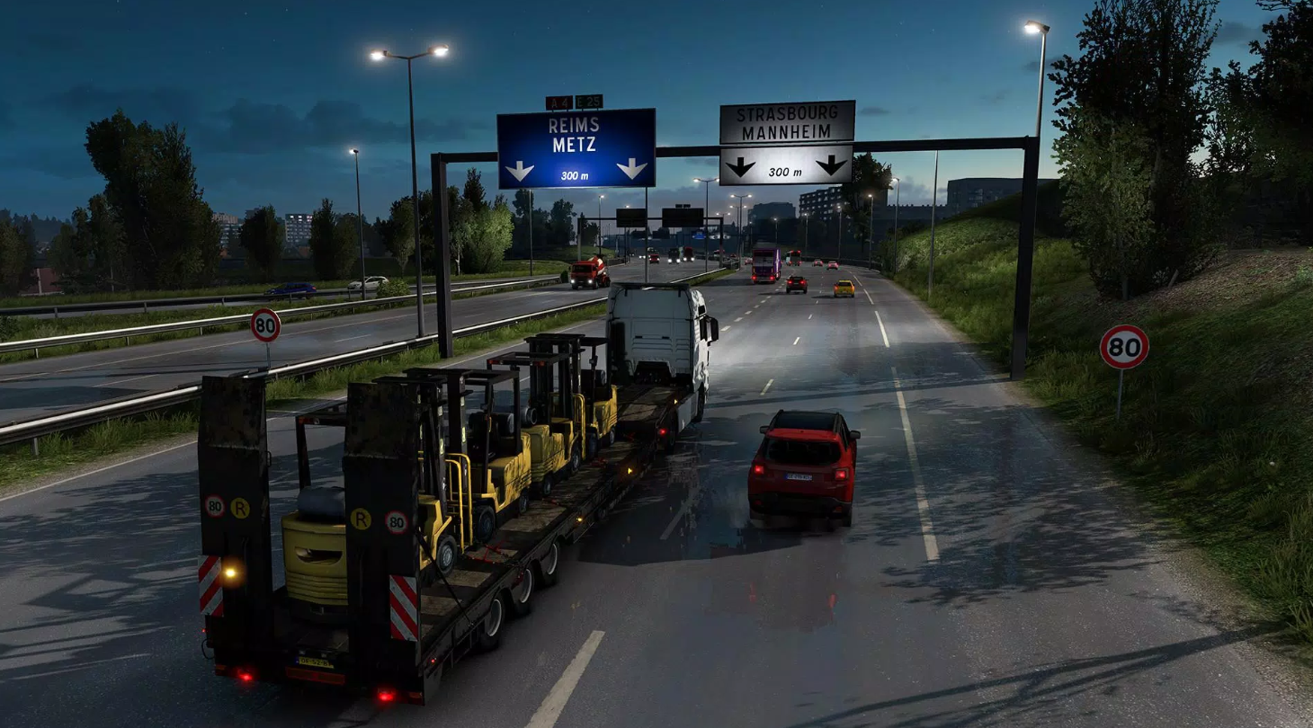 В Euro Truck Simulator 2 вас ждёт система симуляции усталости, которая добавляет реализма: после 11 часов за рулём необходимо найти стоянку и отдохнуть. Погодные условия, такие как дождь или туман, влияют на сцепление с дорогой и обзор, что требует внимательности. Вы можете выбрать между аркадным и продвинутым режимами управления, чтобы настроить сложность под свои предпочтения.