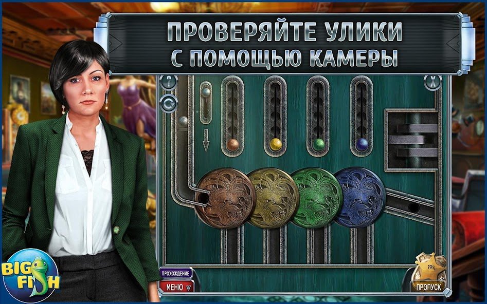 - Разгадывайте головоломки, чтобы продвигаться в расследовании.