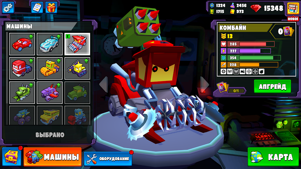 - Улучшайте свои машины, увеличивая скорость, броню и урон.
