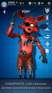 В игре вы можете собирать детали, процессоры и костюмы, чтобы создавать собственных аниматроников. Этих роботов можно отправлять на задания или даже против других пользователей. Это добавляет соревновательный элемент, позволяя вам подниматься в таблице лидеров.