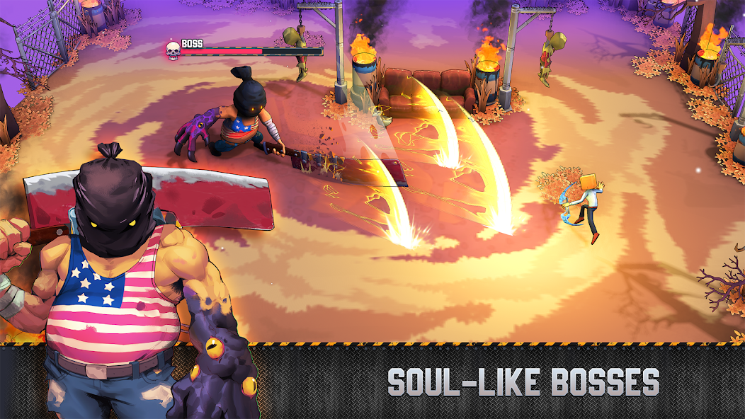 Каждый уровень заканчивается встречей с боссом, который проверит ваши навыки и подготовку. Перед битвой вы можете улучшить своего персонажа на базе, где доступны различные игровые события. Постоянное развитие и прокачка делают каждую победу ещё более удовлетворяющей.