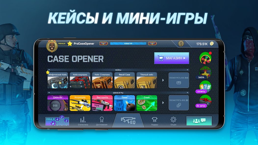 Case Opener: КС кейс симулятор — это увлекательный симулятор, где вы можете испытать свою удачу, открывая кейсы в стиле CS:GO. Здесь вас ждёт широкий выбор кейсов, от стандартных до редких, а также возможность собирать коллекцию скинов и участвовать в мини-играх.