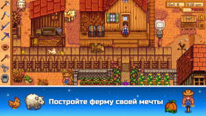 Прокачка навыков происходит естественно: собираете урожай — растет уровень фермерства, сражаетесь в шахтах — улучшается боевой навык. На высоких уровнях вы сможете выбирать перки, влияющие на геймплей. Постройка зданий, автоматизация процессов и кулинария делают вашу ферму уникальной и эффективной.