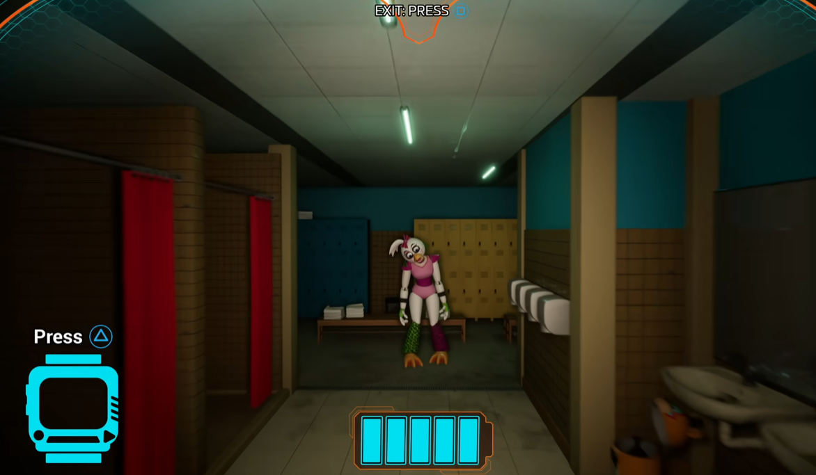 - Используйте укрытия, чтобы скрываться от аниматроников, таких как Рокси, Монти и Чика.