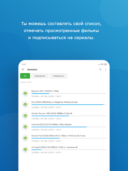MediaGet — это удобное приложение для загрузки файлов через торренты на Android. Оно позволяет вам находить, скачивать и воспроизводить фильмы, музыку и другие медиафайлы прямо на вашем устройстве. С помощью встроенного поиска и плеера вы можете наслаждаться контентом без лишних усилий.