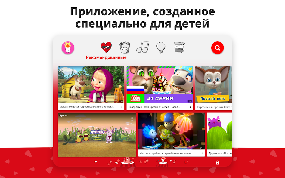 YouTube Детям использует алгоритмы, чтобы предлагать контент, который соответствует интересам вашего ребенка. Например, если он увлекается наукой, в рекомендациях появятся видео о космосе или экспериментах. А если он любит музыку, то приложение предложит подборки с песнями и клипами.