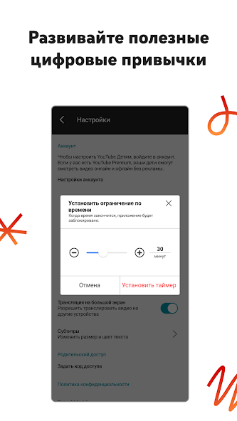 Приложение позволяет настроить профиль ребенка, указав его возраст и интересы. Вы можете выбрать одну из трех возрастных категорий, отключить поиск и даже ограничить время просмотра. Это помогает создать безопасное пространство, где ребенок будет смотреть только одобренные вами видео.