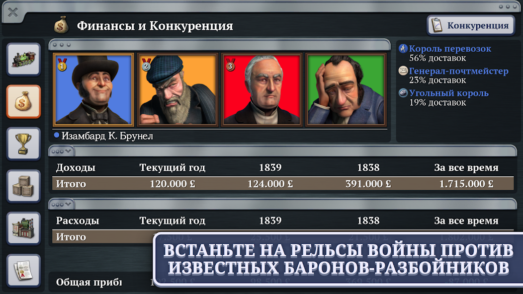 Sid Meier's Railroads! — это увлекательный симулятор управления железнодорожной сетью, где вы становитесь магнатом рельсовой эпохи. Ваша цель — соединить города и предприятия, оптимизировать маршруты и создать прибыльную транспортную систему. Игра сочетает в себе элементы стратегии и экономического планирования, предлагая вам испытать себя в роли настоящего железнодорожного барона.