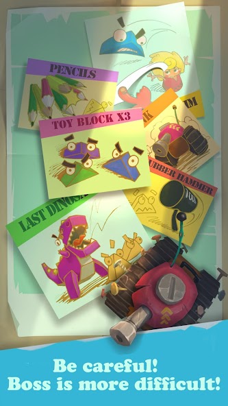 Игра предлагает 50 уровней, после которых открывается бесконечный режим. Здесь вы можете проверить свои навыки в условиях постоянного давления. Среди врагов — игрушечные динозавры, танки и другие необычные монстры, которые добавляют разнообразие в геймплей.