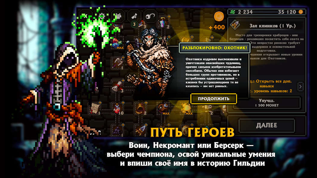 Игра предлагает уникальную систему развития, основанную на создании и улучшении Гильдейской крепости. Новые здания открывают доступ к разнообразным классам героев, каждый из которых обладает уникальными навыками и оружием. Хотите ли вы быть скрытным магом, уничтожающим врагов заклинаниями, или мощным варваром, справляющимся с толпами врагов? Ваша стратегия всегда зависит от выбранных классов и возможности переключаться между ними для увеличения разнообразия игрового опыта.
