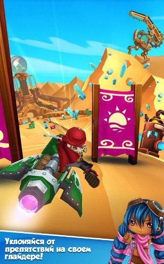 Sky Punks — это не просто раннер, а целая история, развивающаяся по мере прохождения. Диалоги персонажей и комиксные вставки добавляют игре глубины, а разнообразие локаций и миссий не дадут заскучать.