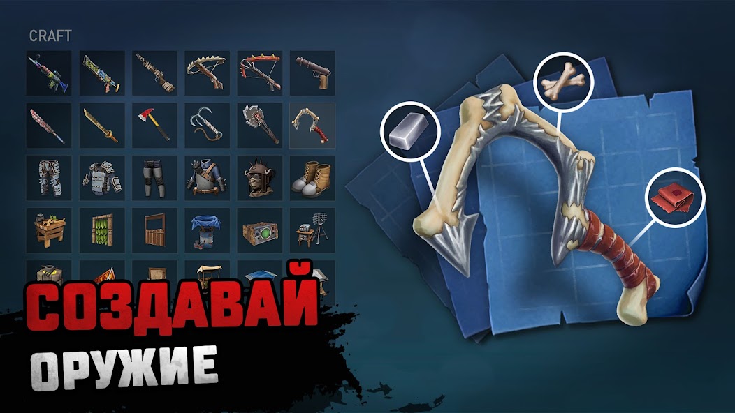 - Крафтинг — создавайте инструменты, оружие, мебель и устройство для очистки воды.
