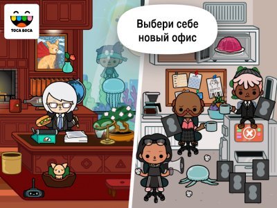 Игра позволяет вам придумывать собственные сценарии. Вы можете быть шеф-поваром, сыщиком или даже пилотом вертолета. Жизнь Тока: Офис — это мир, где офисные будни превращаются в увлекательное приключение.