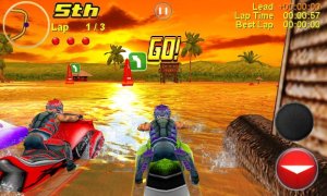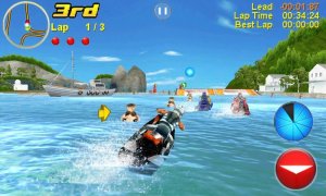 - Сбор бонусов: на трассах разбросаны мешки с деньгами, которые можно использовать для покупки новых гидроциклов.