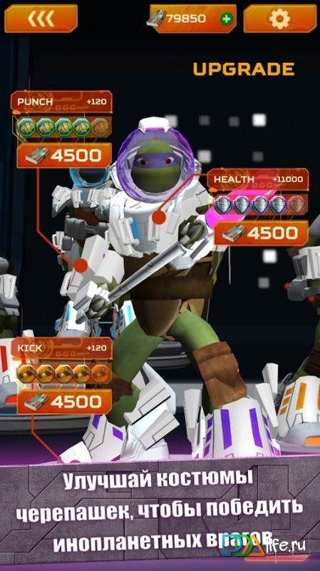 Каждого из черепашек можно прокачивать, усиливая их здоровье, удары и уникальные навыки. Для этого вы зарабатываете игровую валюту в сражениях. Баланс между героями важен, ведь в финальных битвах потребуется слаженная работа всей команды.