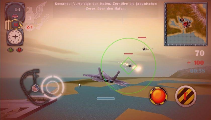 BATTLE KILLER MUSTANG X HDDEMO — это захватывающая аркадная игра с элементами стратегии, где вы погружаетесь в альтернативную историю событий 1941 года на Гавайях. Представьте, что вместо Curtiss P-40 в небе над Перл-Харбором парят легендарные P-51 Mustang и F-22 Raptor. Ваша задача — защитить американские корабли от атак японских подлодок, эсминцев и авианосцев, таких как Shokaku и Akagi, а также их истребителей Mitsubishi A6M Zero.