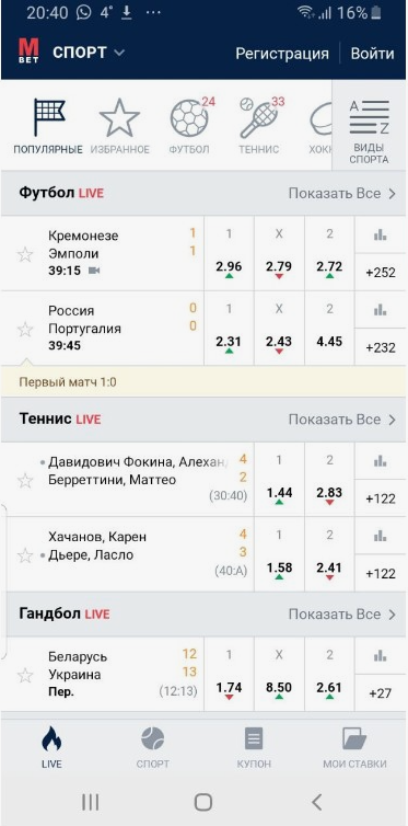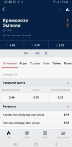 - Прематч и лайв: делайте ставки до начала события или в процессе.