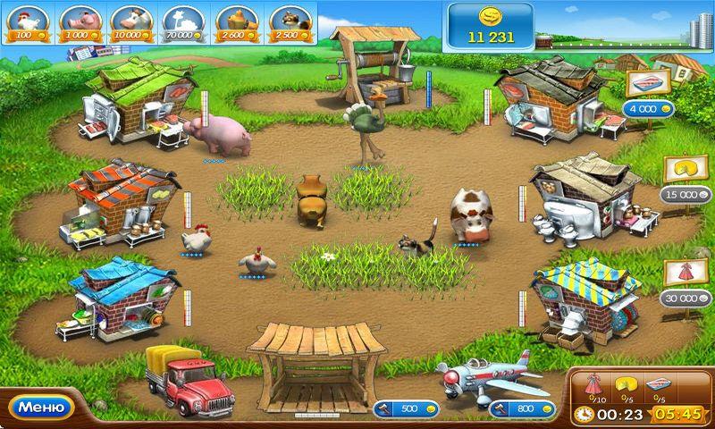 Вас ждёт множество уровней, где нужно кормить животных, собирать продукцию и продавать её. Например: