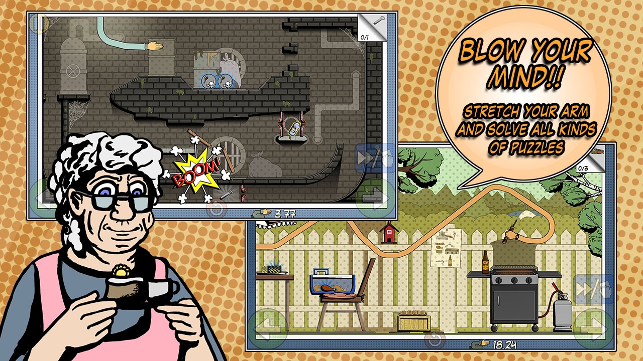 Grab The Bottle — это увлекательная головоломка, где вы управляете бесконечно длинной рукой, чтобы дотянуться до заветной бутылки. Сюжет начинается с 50-х годов, когда младенец обнаруживает свою необычную способность. Ваша задача — решать головоломки, используя эту руку, чтобы преодолевать препятствия и достигать цели. Каждая бутылка символизирует этапы жизни героя: от молока в детстве до пива после работы.