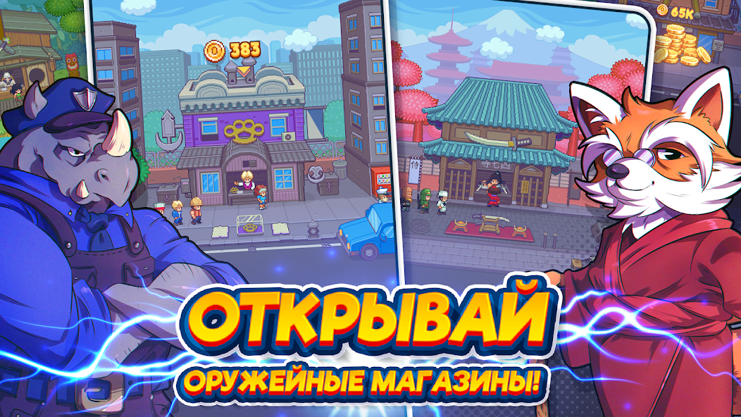 - Развивайте оружейные магазины для получения ресурсов.