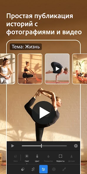 - Интеграция: синхронизируйте работу с настольной версией Lightroom для более глубокого редактирования.
