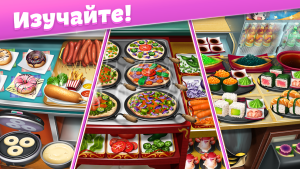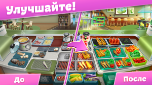 - Улучшение оборудования: ускоряйте процесс готовки и увеличивайте прибыль.