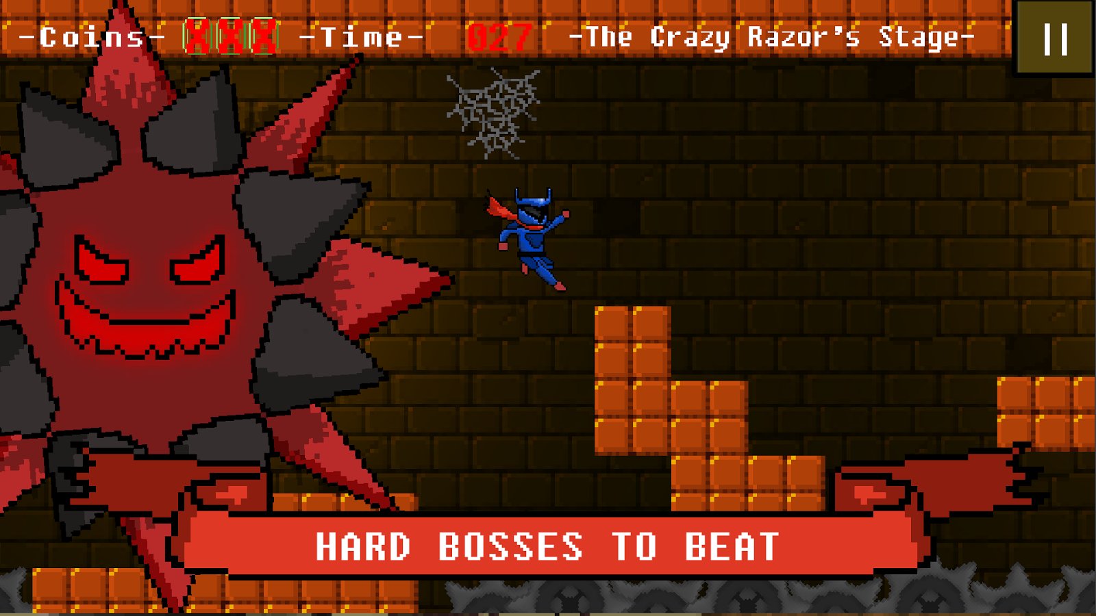 - Препятствия в виде шипов, огненных факелов и движущихся пил.