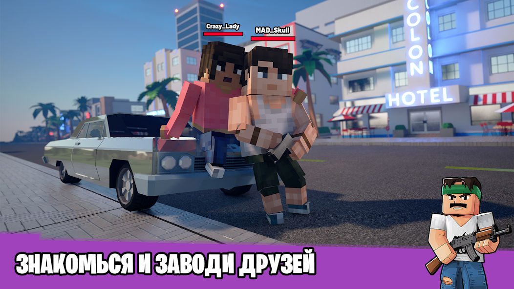 Лос-Палмс — это город, где каждое действие имеет последствия. Уличные войны, борьба за территорию и постоянная угроза со стороны конкурентов делают игру динамичной и захватывающей. Block Crime Sandbox — это не просто игра, а целый мир, где вы пишете свою историю.