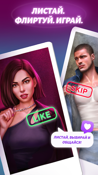 - Выбор партнера. Начните свое приключение с просмотра профилей потенциальных романтических интересов. Решение — с кем начать общение — остается только за вами. Понравился персонаж? Проведите пальцем вправо и начните диалог.
