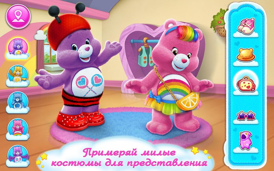 В Заботливых Мишках-музыкантах вы можете наряжать своих пушистых друзей в яркие костюмы, добавляя им индивидуальности. Украшайте сцену, чтобы она сияла всеми цветами радуги, и делайте селфи с мишками, чтобы сохранить эти моменты. Каждая деталь в игре наполнена теплом и радостью.