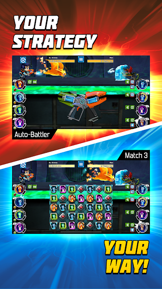 Геймплей построен на механике «три в ряд», где вы заряжаете своих слизней, создавая цепочки комбинаций. Каждое успешное действие позволяет активировать способности слизней, чтобы атаковать врагов. Вы можете комбинировать элементы, создавая мощные синергии, что добавляет стратегическую глубину в сражения. В игре доступны как PvE-кампании, так и PvP-дуэли, где вы можете проверить свои навыки против других участников.