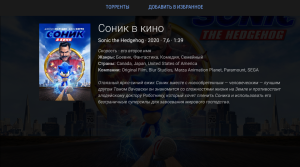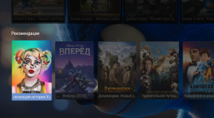 - Категории: новинки, избранное, история просмотров, лучшие фильмы.